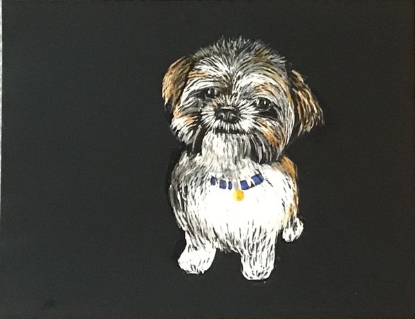 Puppy. Decorated frame. Scratch art 11X14