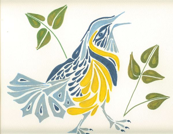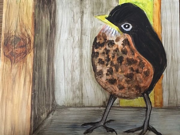 Robin's first worm. Water based media on clayboard. 8X10