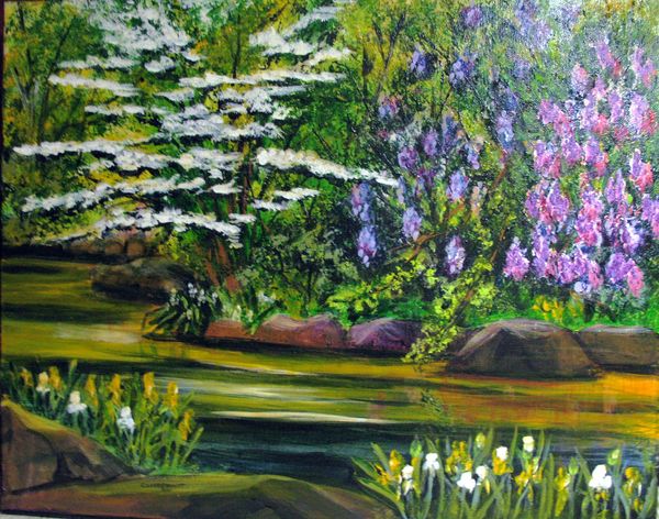 Spring at the Spring, acrylic, 20X16