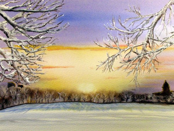 Christmas Morning in Regina. Framed watercolour. 9X11