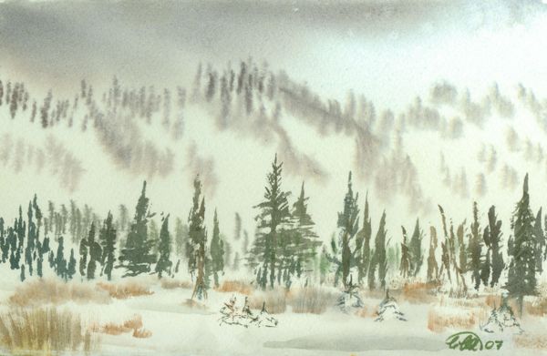 Flurry, watercolour, framed 9X11